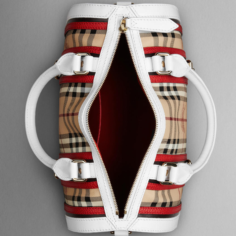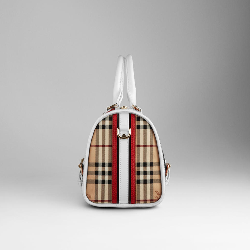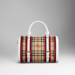 Haymarket check bowling bag with leather belt details and polished metal embellishments