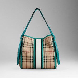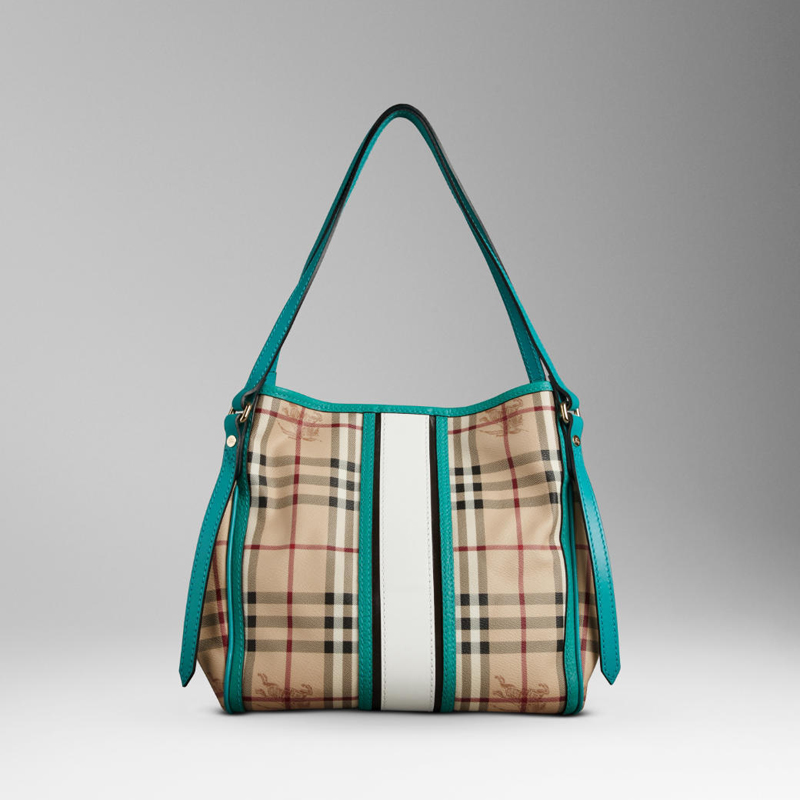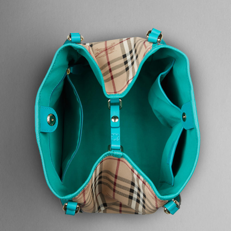Haymarket check coated canvas tote bag with coloured leather centre panel