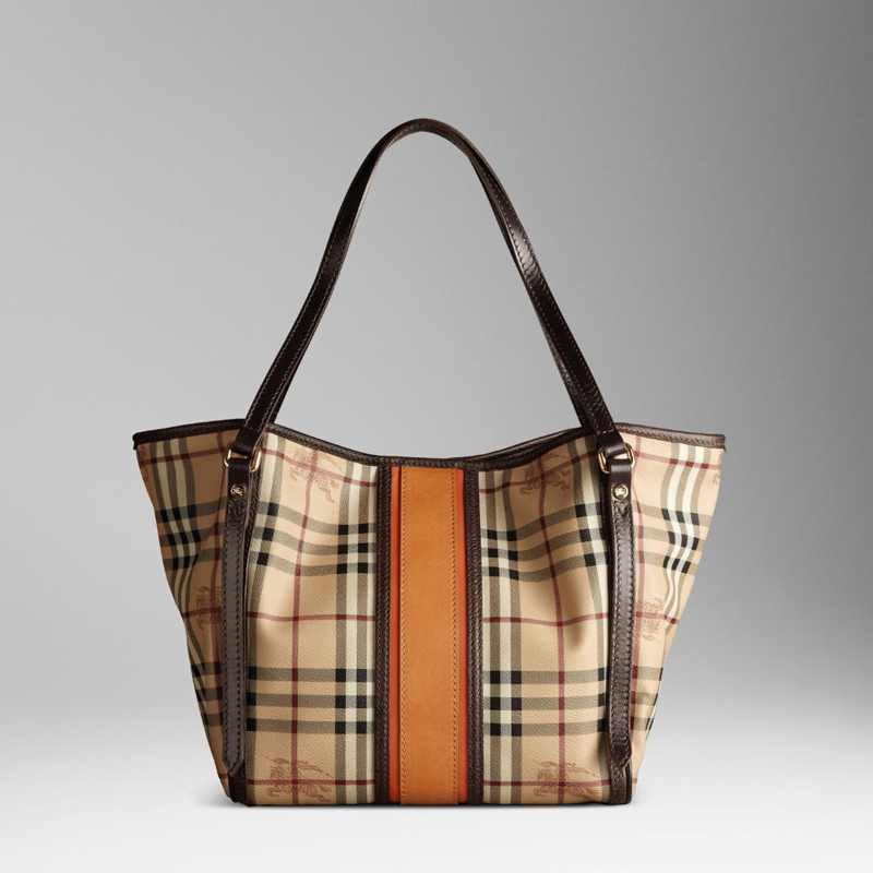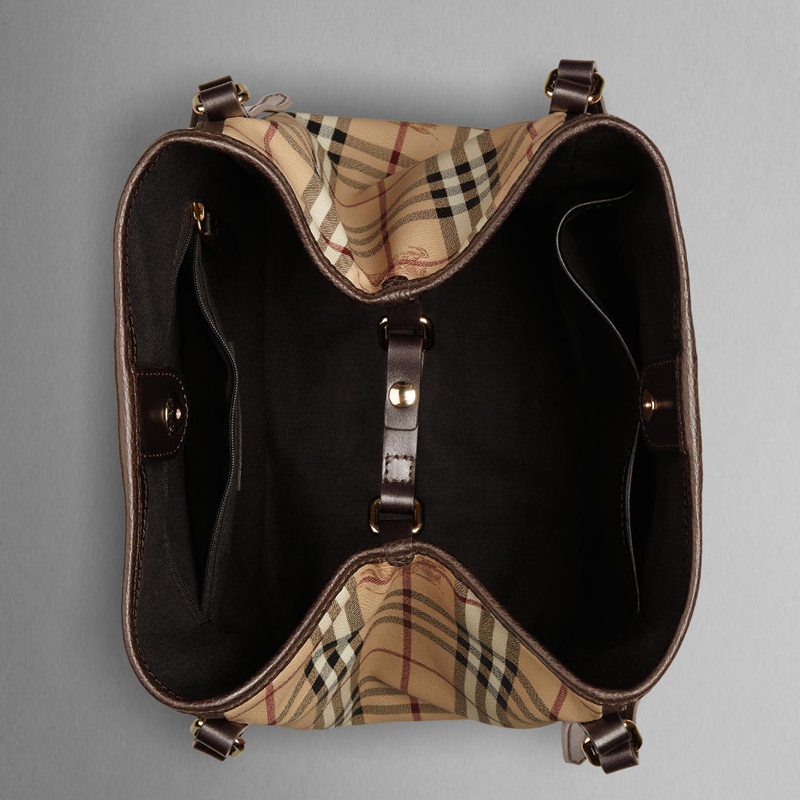Haymarket check coated canvas tote bag with coloured leather centre panel