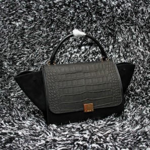 2015 Celine Trapeze Bag Croco Leather C3345 Black