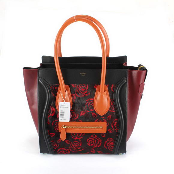 Celine Luggage Bags Medium in Horse Hair Bordeaux