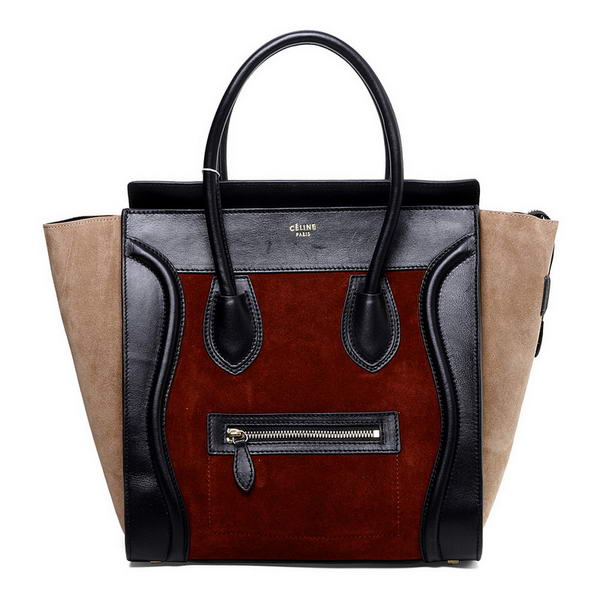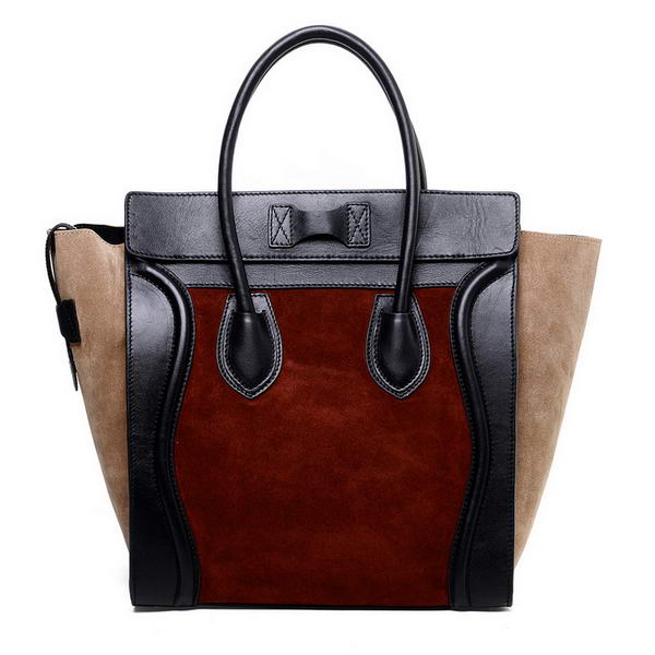 Celine Luggage Mini Boston Bag Original Suede Leather Wine