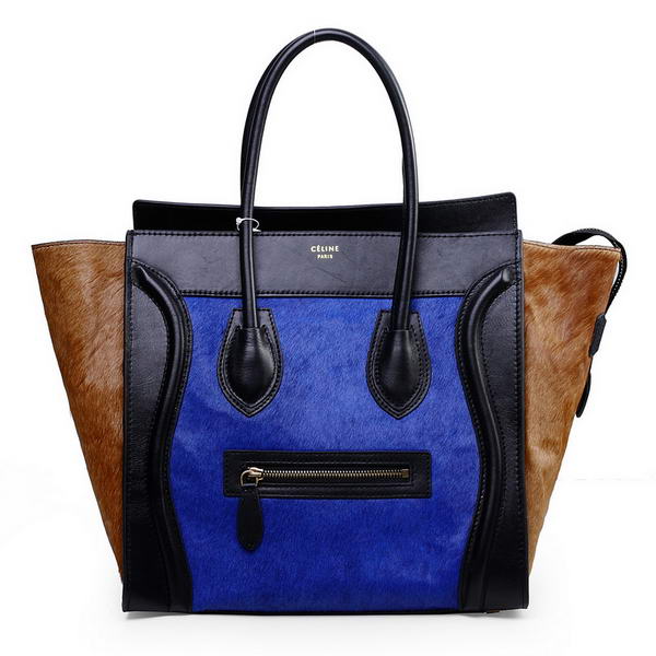 Celine Luggage Mini Boston Bags Original Leather&Horsehair Blue