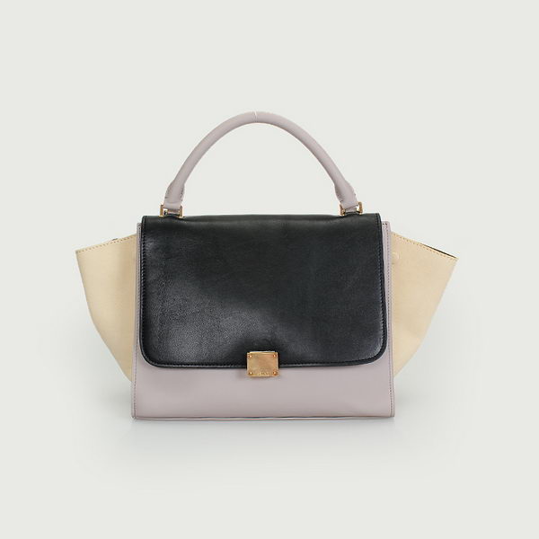 Celine Trapeze Bags Calfskin&Suede Black&Purple&Apircot