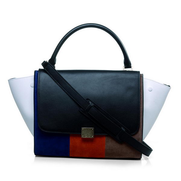 Celine Trapeze Bags Original Calf&Suede Leather Black&Multicolour&White
