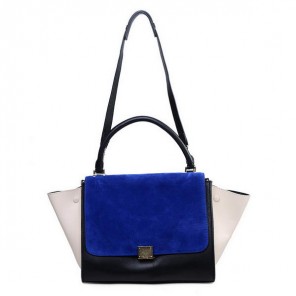Celine Trapeze Bags Original Calf&Suede Leather Blue&Black