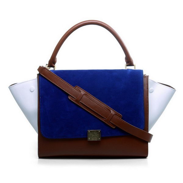 Celine Trapeze Bags Original Calf&Suede Leather Brown&Blue&White
