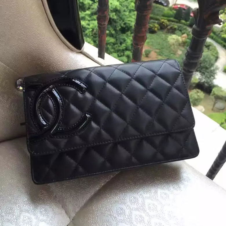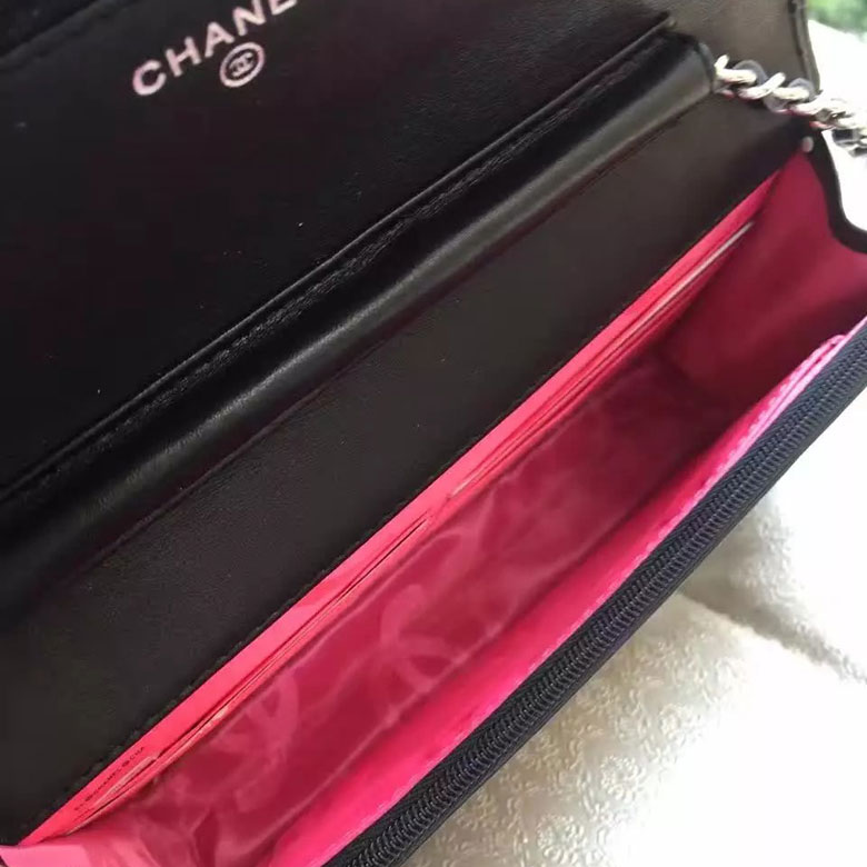 2016 Chanel WOC A46646 Black Original Sheepskin Leather Mini Flap Bag