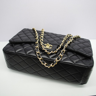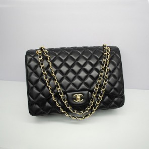 2013 Chanel Maxi Classic Flap handbags 58601 Gold chain Black