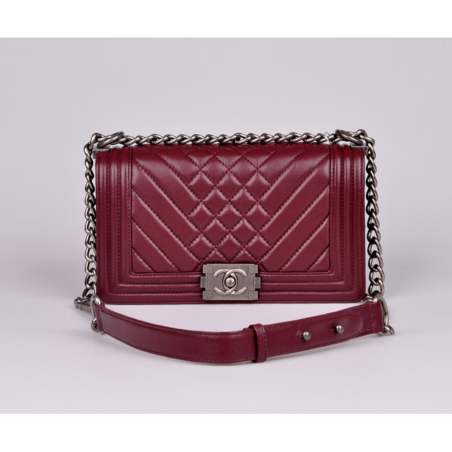 2014 Boy Chanel Flap Shoulder Bag in Sheepskin Leather A90191 Claret