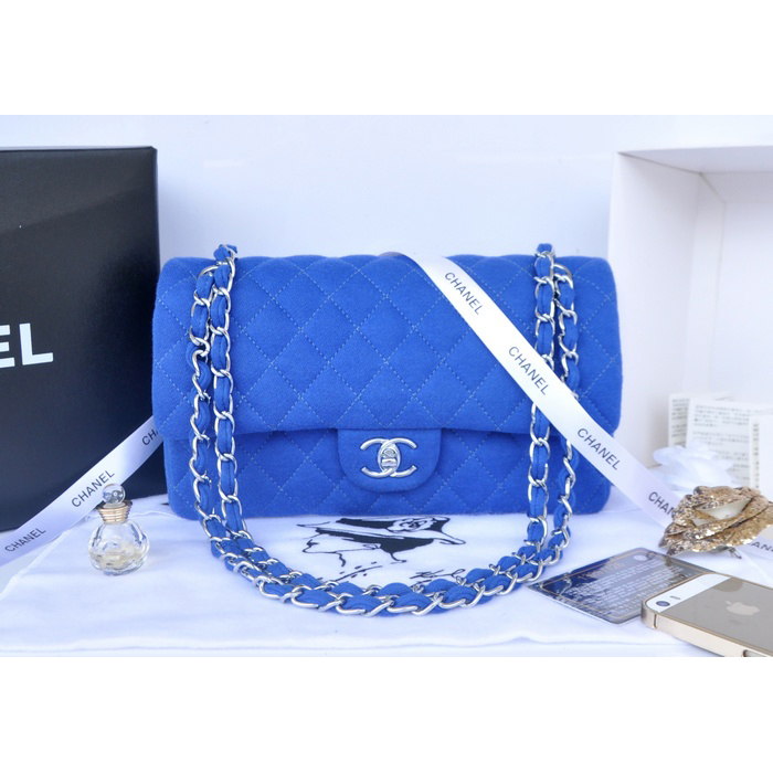 2014 Chanel 2.55 Series Classic Flap Bag Denim Fabric CF1112 Blue