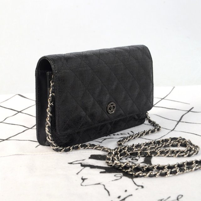 2014 Chanel A33814 Original Glazed Crackled Leather mini Flap Bag with Black