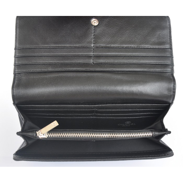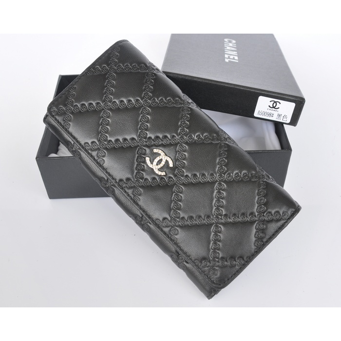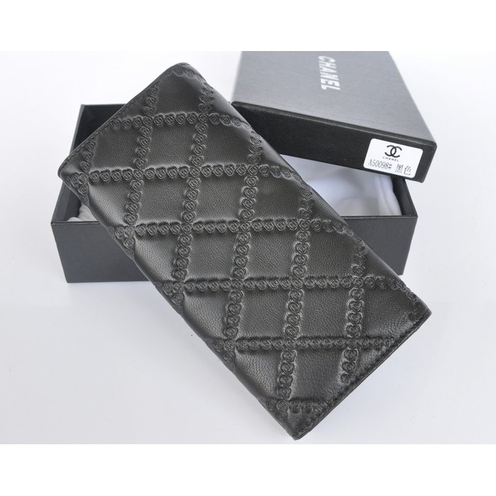 2014 Chanel Bi-Fold Wallet Embossed Leather A50098 Black
