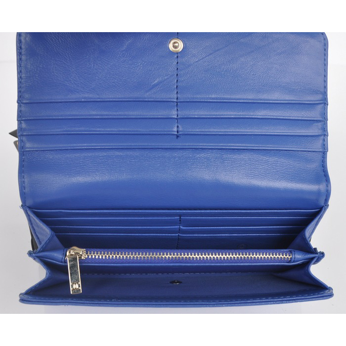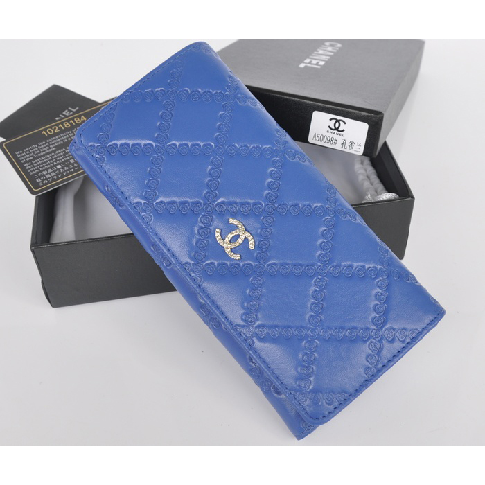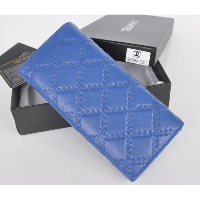 2014 Chanel Bi-Fold Wallet Embossed Leather A50098 Blue