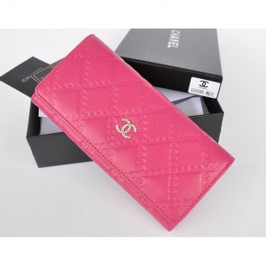 2014 Chanel Bi-Fold Wallet Embossed Leather A50098 Rose