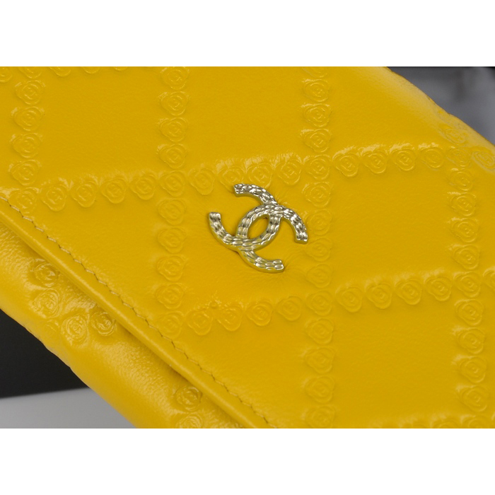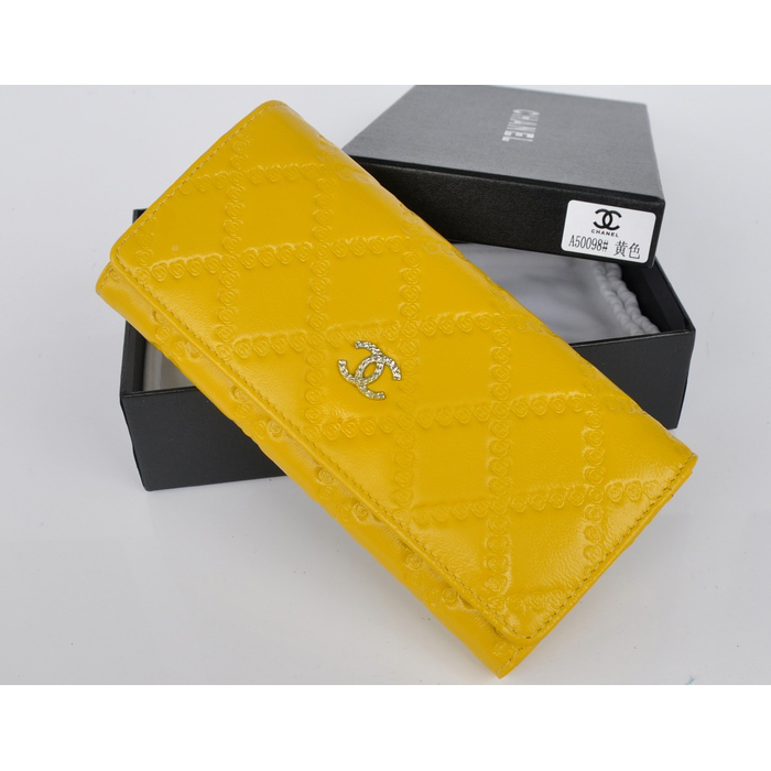 2014 Chanel Bi-Fold Wallet Embossed Leather A50098 Yellow