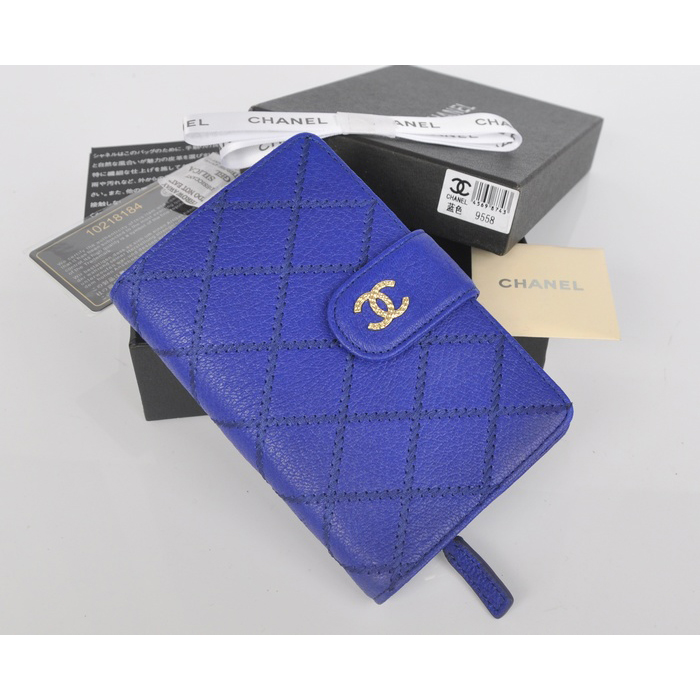 2014 Chanel Bi-Fold Wallet Original Elephant pattern Leather C9558 Blue