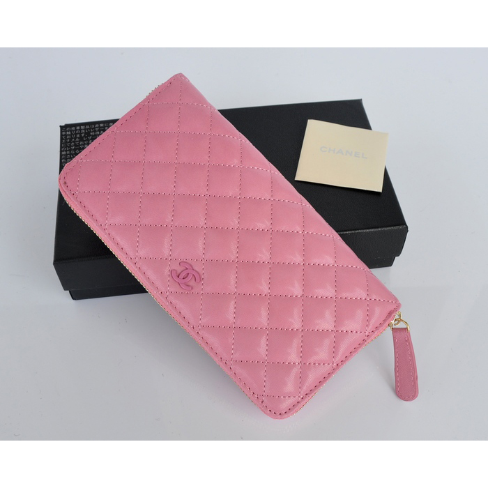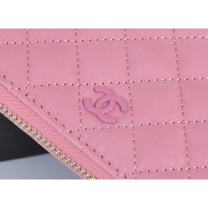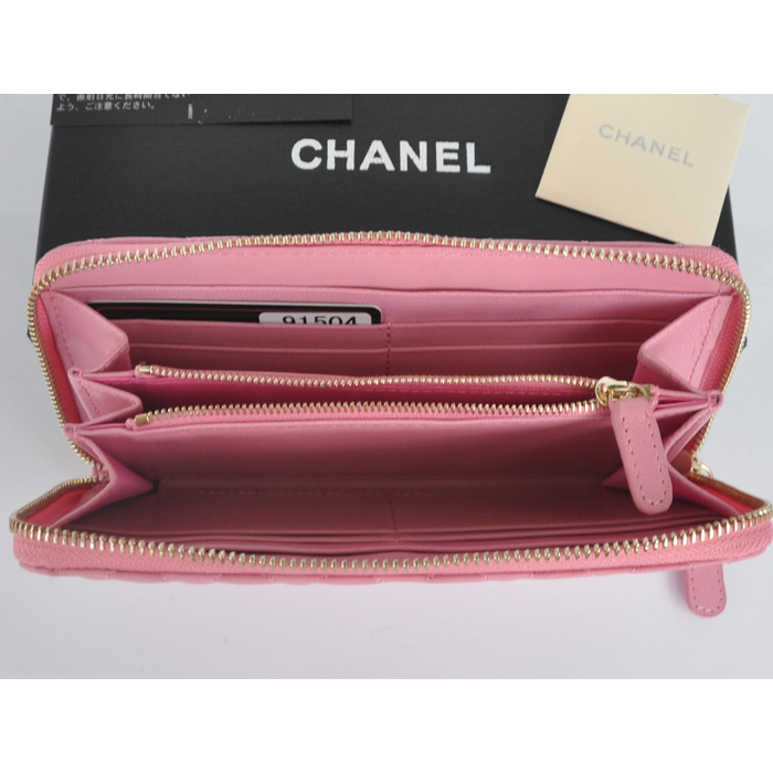 2014 Chanel Bi-Fold Zip Around Wallet Original Leather A91504 Pink