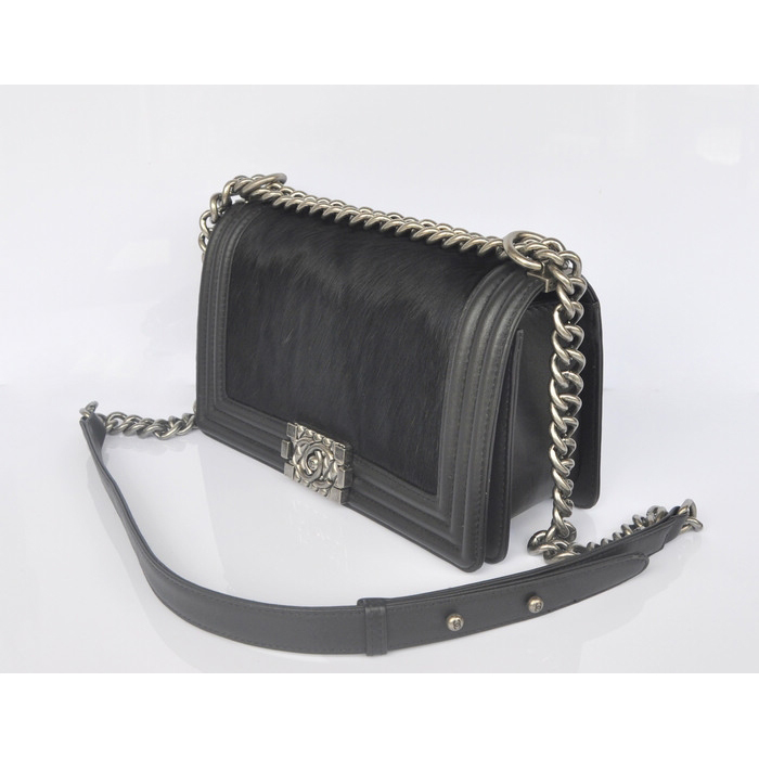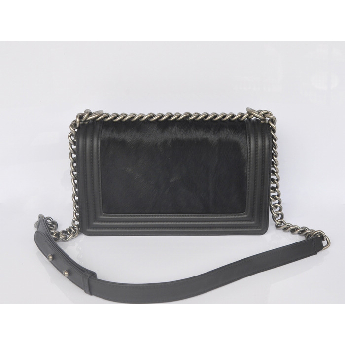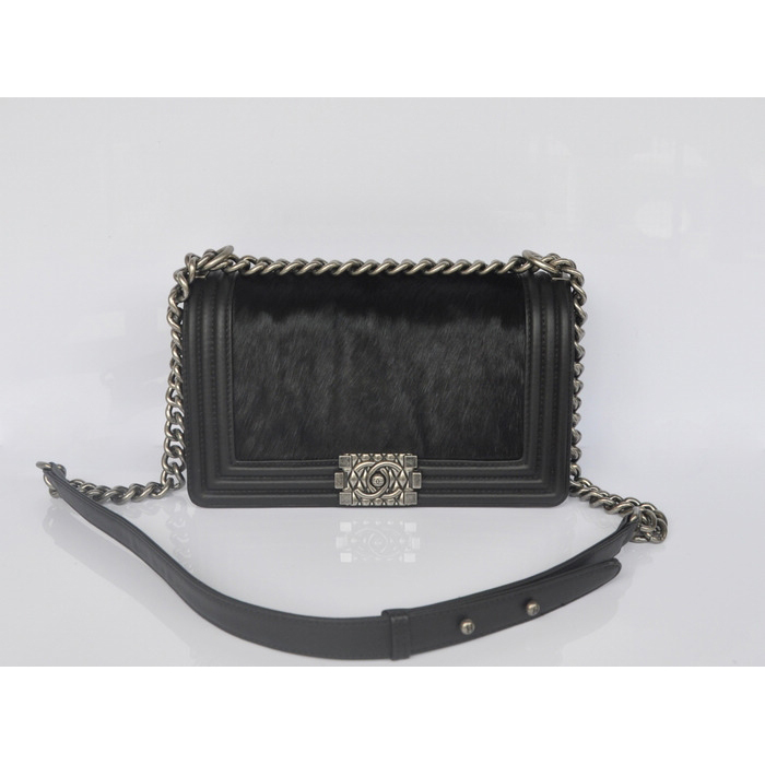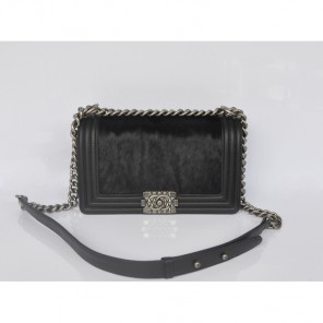 2014 Chanel Boy Flap Shoulder Bag Black Sheepskin Leather Horsehair A67086