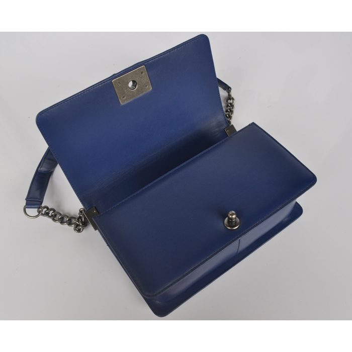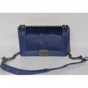 2014 Chanel Boy Flap Shoulder Bag Royalblue Sheepskin Leather Horsehair A67086
