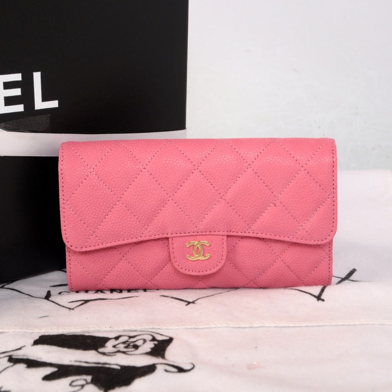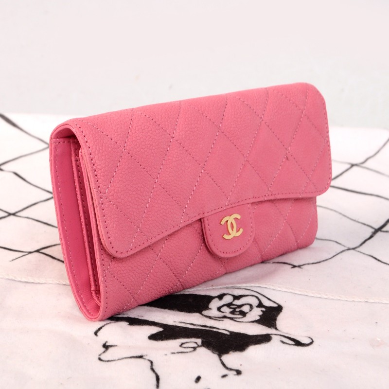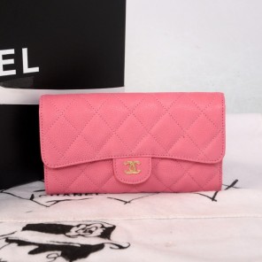 2014 Chanel C006 Pink Original Cannage Pattern Nubuck Leather Long Tri-Fold Wallet