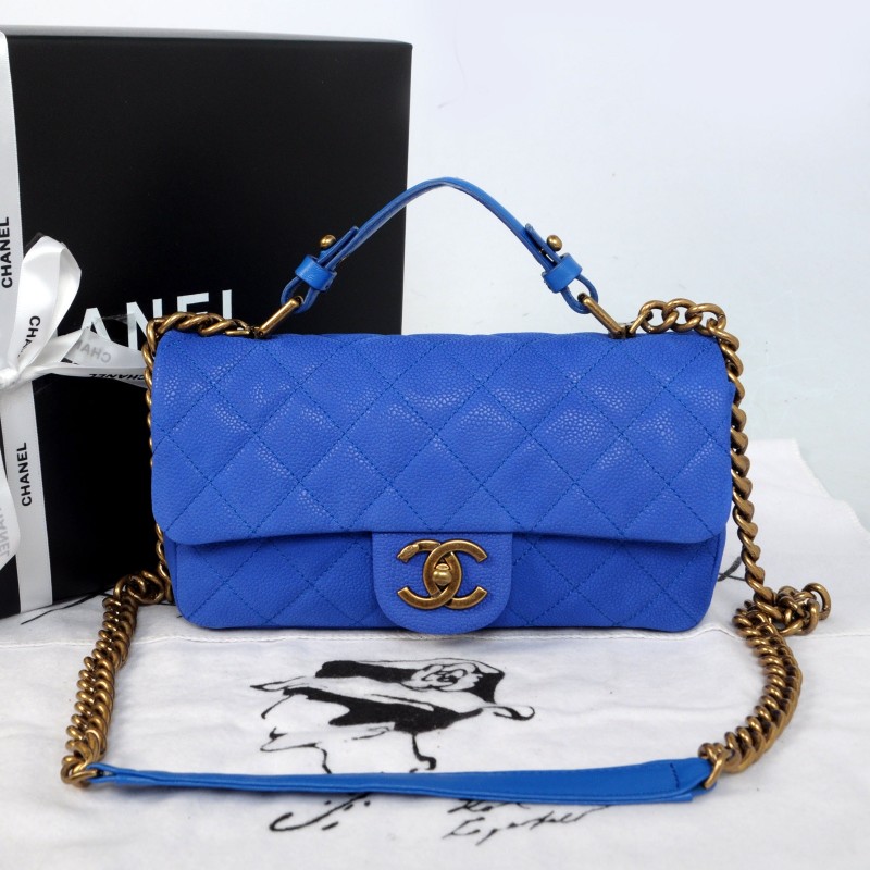 2014 Chanel Classic Cannage Pattern Nubuck Leather Top Flap Bag A67622 Blue