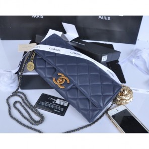 2014 Chanel Classic Flap Bag Original Leather A21908 Dark Blue