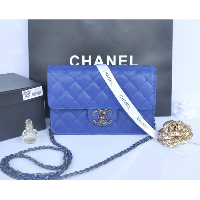 2014 Chanel Classic Flap Bag Original Leather A91101 Blue