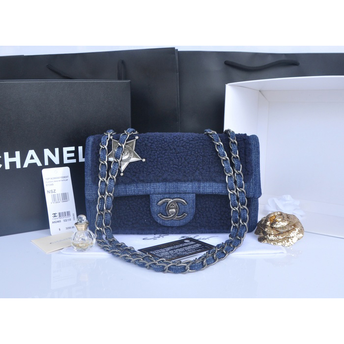 2014 Chanel Classic Flap Bag Original Villus A92465 Dark Blue