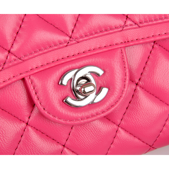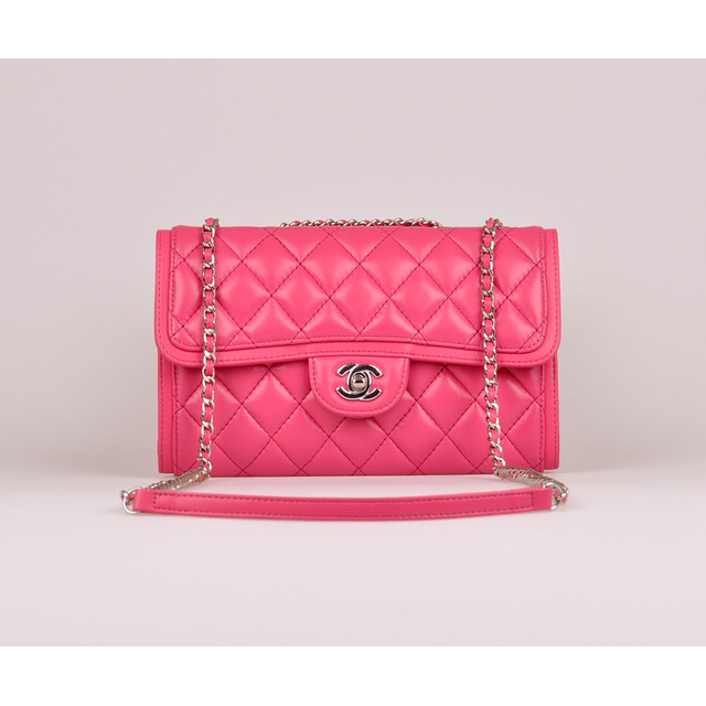 2014 Chanel Classic Flap Bag Rose Sheepskin Leather A25280 Silver