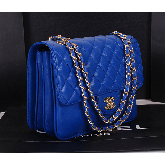 2014 Chanel Classic Flap Bag Sheepskin Leather A0079 Blue