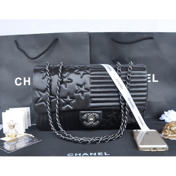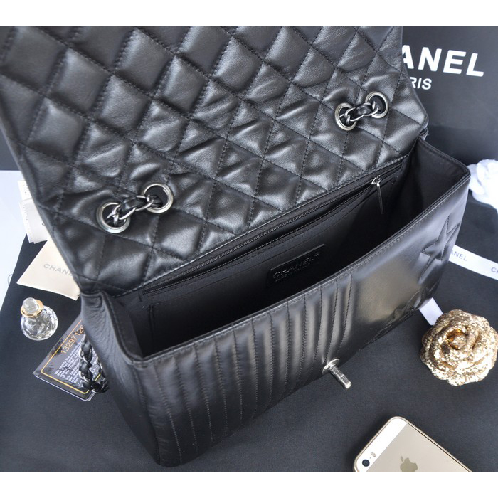 2014 Chanel Classic Flap Bag Sheepskin Leather A90352 Black