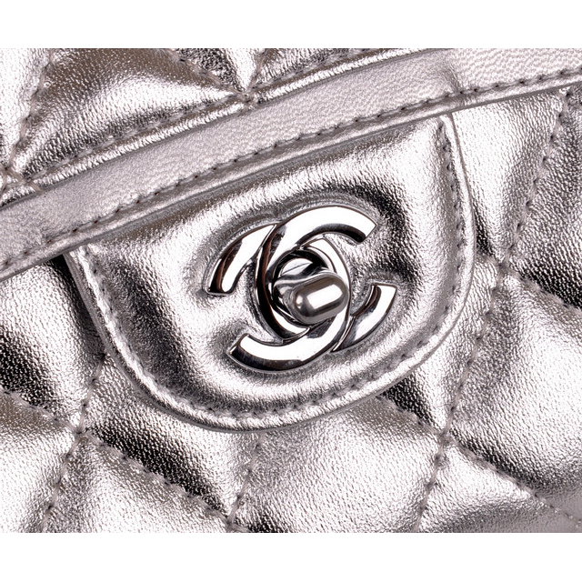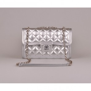 2014 Chanel Classic Flap Bag Silver Sheepskin Leather A25280 Silver