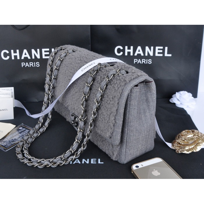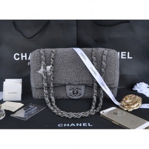 2014 Chanel Classic Flap Bag Villus A32464 Grey