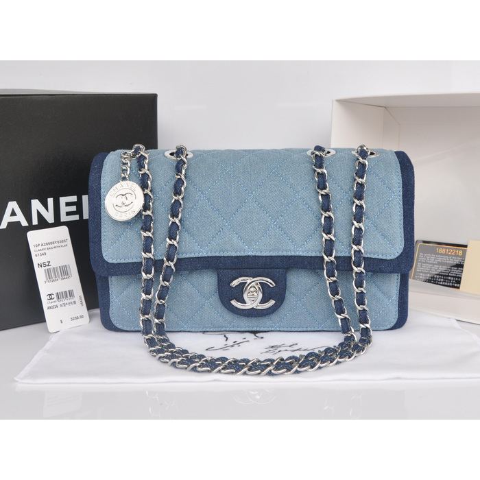 2014 Chanel Classic Flap Shoulder Bag Original Denim A92216 Gray&Blue