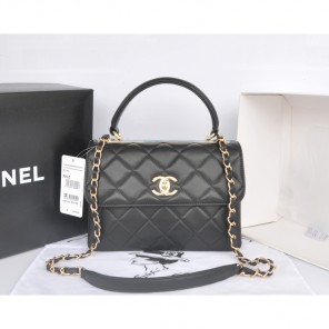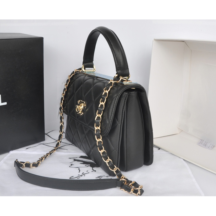 2014 Chanel Classic Top Handle Bag Original Sheepskin Leather A92236 Black