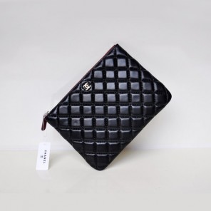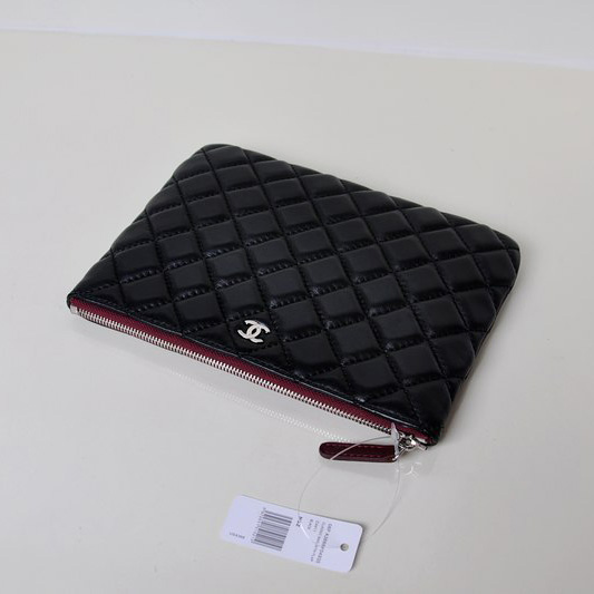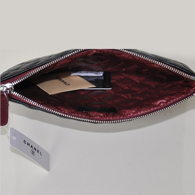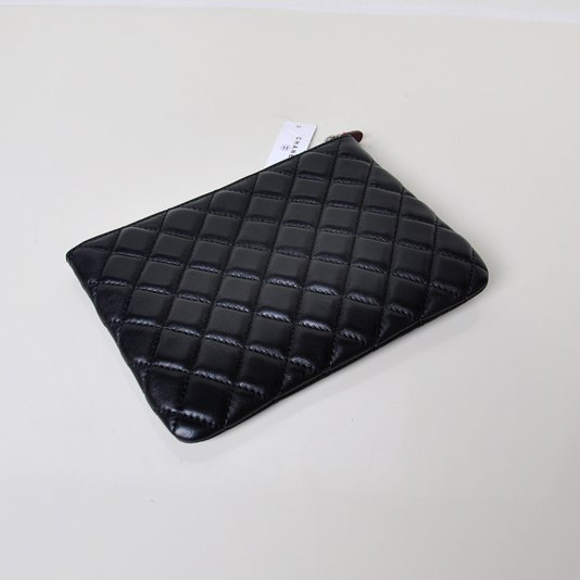 2014 Chanel Clutch Bag Black Sheepskin Leather A67781 Silver
