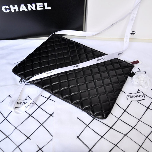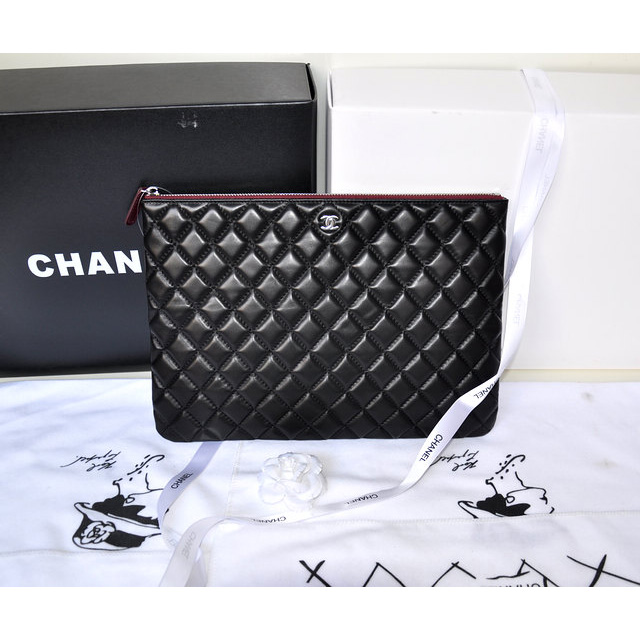 2014 Chanel Clutch Bag Original Sheepskin Leather A67780 Black with Silver hardware