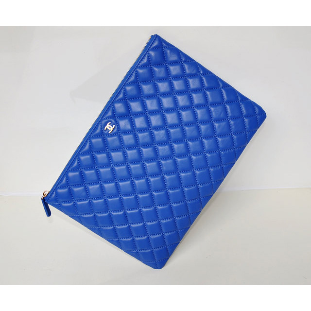 2014 Chanel Clutch Bag Sheepskin Leather A67780 Blue with Gold hardware