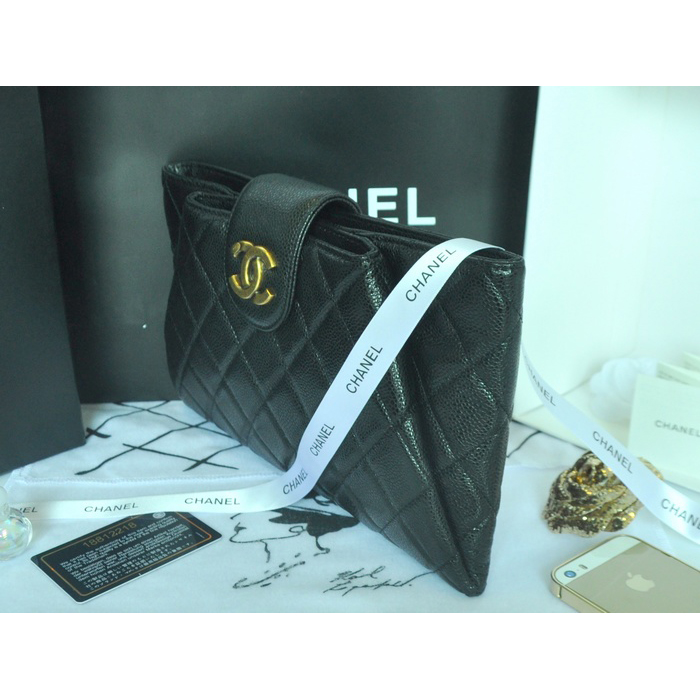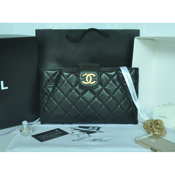 2014 Chanel Clutch bag Original Caviar Leather A92335 Black