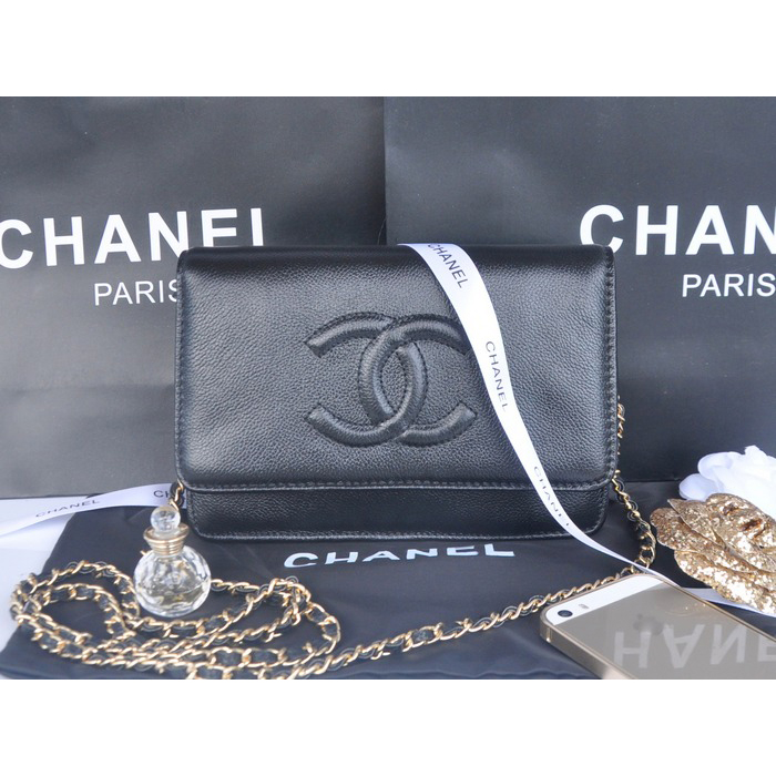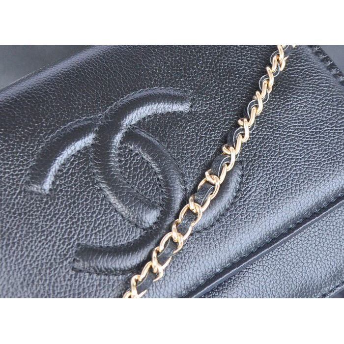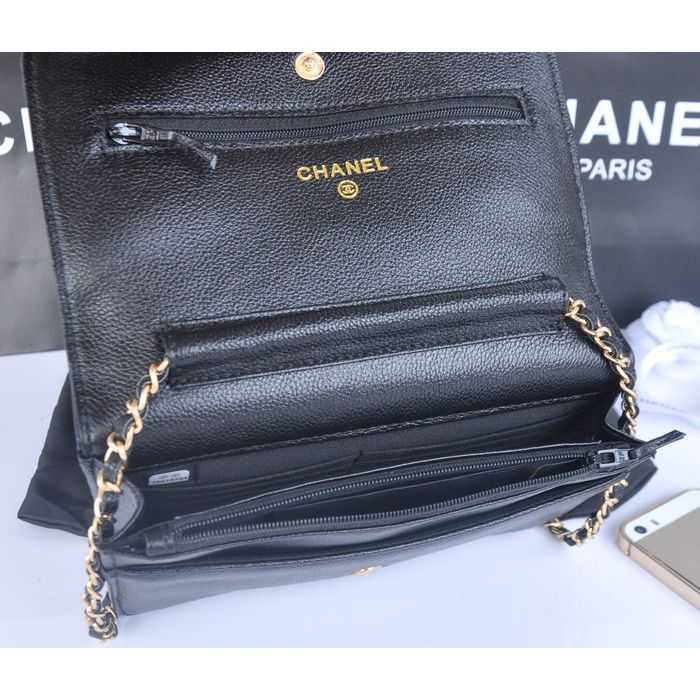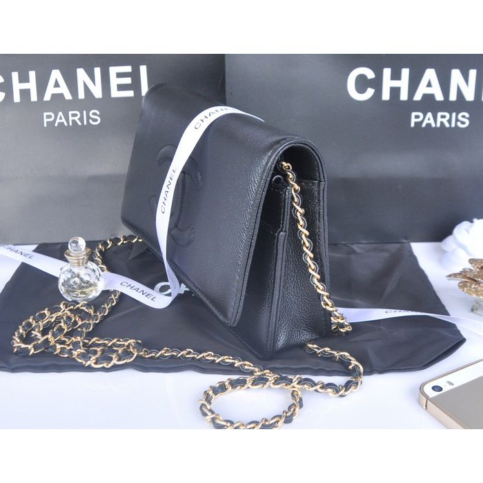 2014 Chanel Flap Shoulder Bag Black Calfskin Leather A33817 Gold