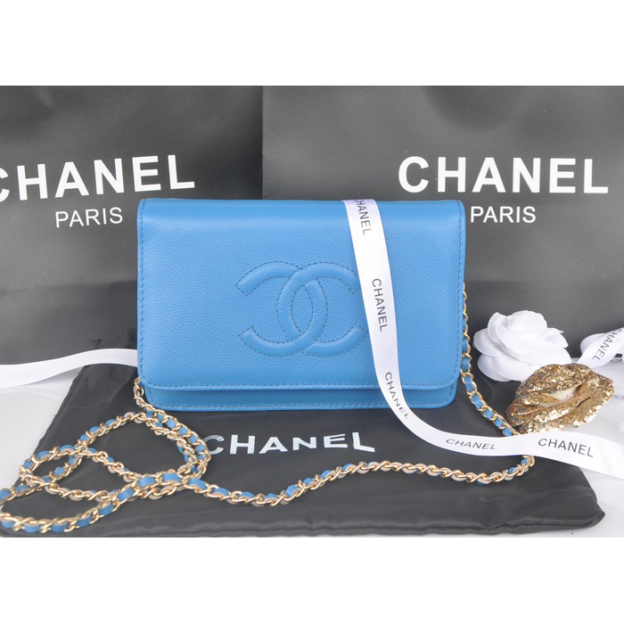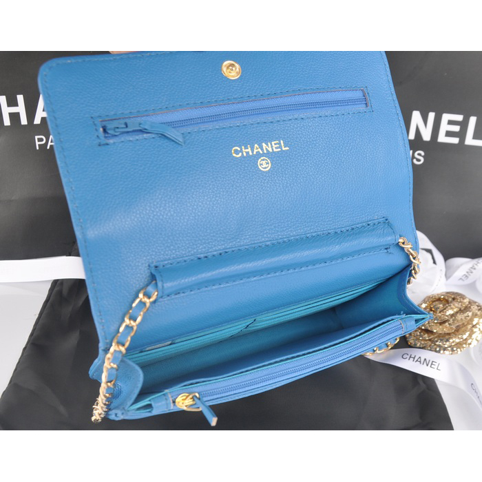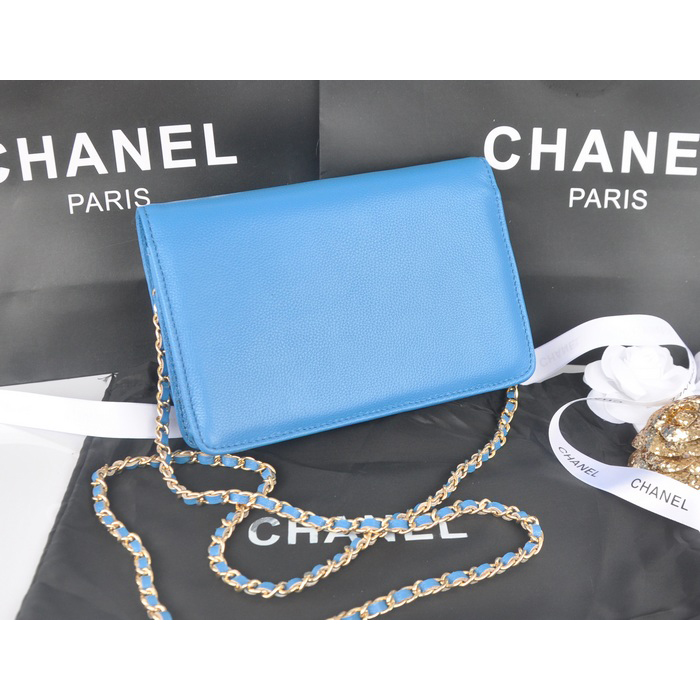 2014 Chanel Flap Shoulder Bag Blue Calfskin Leather A33817 Gold