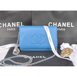 2014 Chanel Flap Shoulder Bag Blue Calfskin Leather A33817 Silver