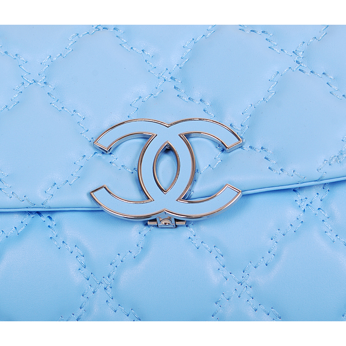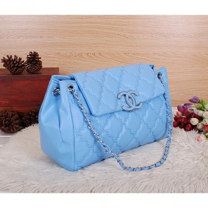 2014 Chanel Flap Shoulder Bag Calfskin Leather A92248 in Lake blue