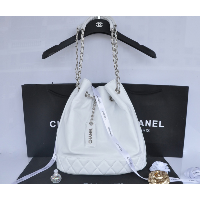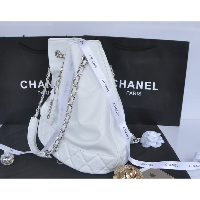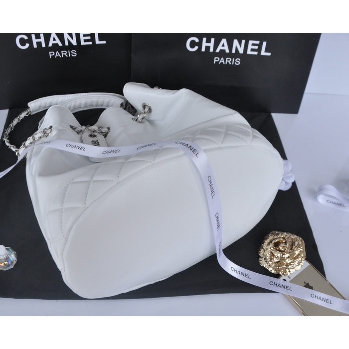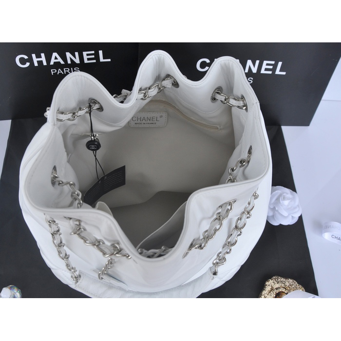 2014 Chanel Hobo Shoulder Bag in Sheepskin Leather A58016 White