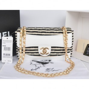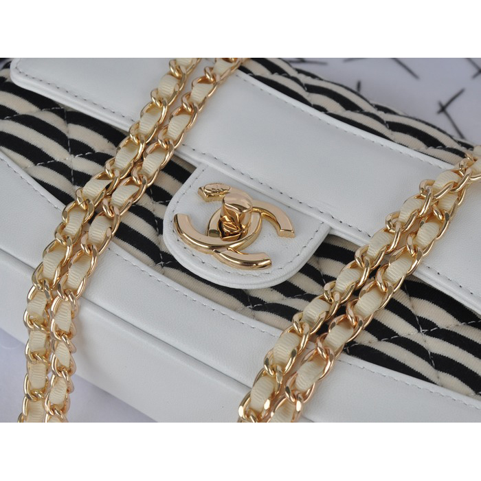 2014 Chanel Jersey and Lambskin Flap Bag A92051 White