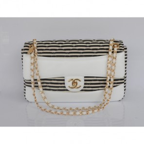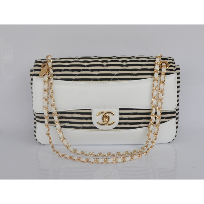 2014 Chanel Jersey and Lambskin Flap Shoulder Bag A32053 White