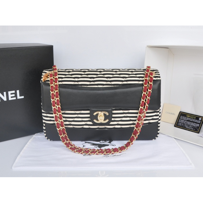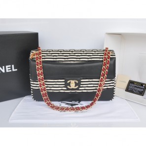2014 Chanel Jersey and Original Lambskin Flap Bag A92053 Black
