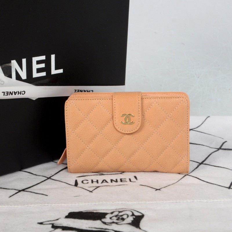 2014 Chanel Matelasse Bi-Fold Wallet Original Cannage Pattern Nubuck Leather C004 Apricot