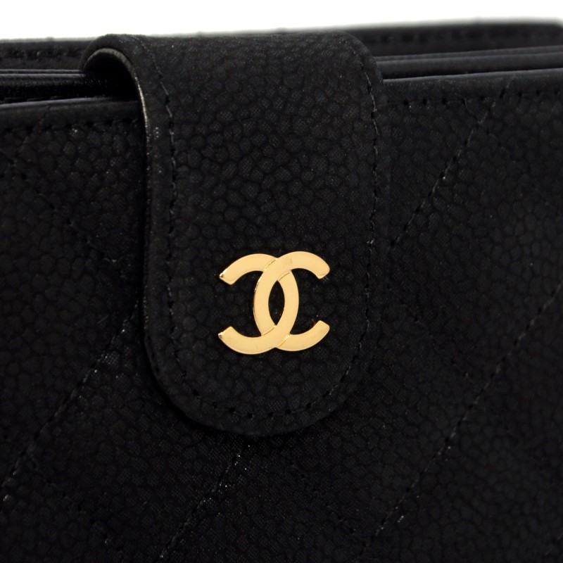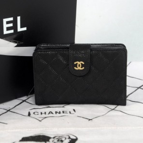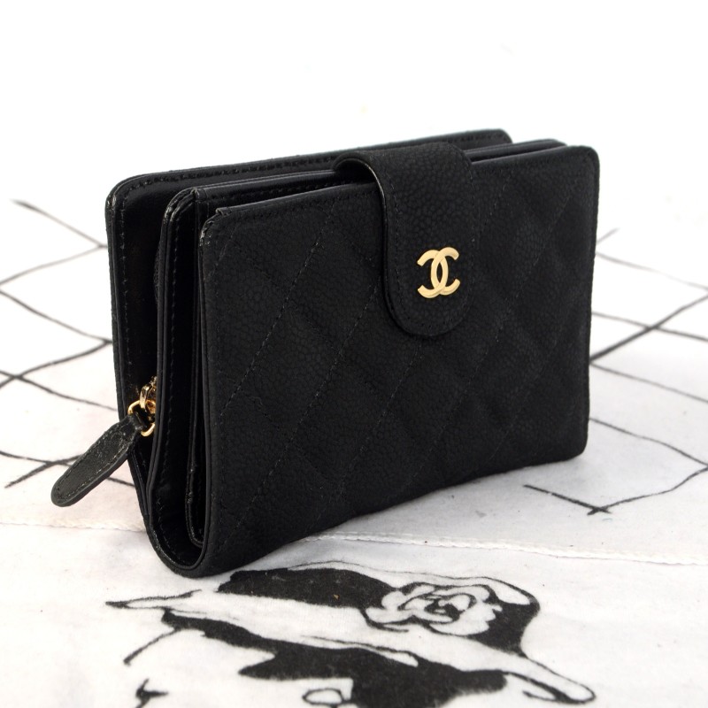 2014 Chanel Matelasse Bi-Fold Wallet Original Cannage Pattern Nubuck Leather C004 Black